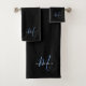 Élégant ensemble de serviettes de bain Monogramme Black Script moderne. Un élégant monogramme de script bleu combiné à une police blanche de san-serif propre donne un look contemporain.