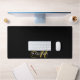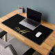 Un élégant monogramme d'or et de blanc sur un tapis de bureau noir. Style moderne et élégant.
