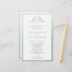 Élégant programme de mariage vert pâle avec un beau monogramme dessiné à la main et un cadre aquarelle dans les tons vert pâle. Eléments calligraphiques modernes écrits à la main. Possibilité de modifier et d'ajuster le texte en sélectionnant "Modifier à l'aide de l'outil de conception". Avant avec les détails de la cérémonie mariage, retour avec les noms de la fête de mariage et message de remerciement pour vos invités. Une partie de notre collection "Pale Green Watercolor, Mariage de Monogramme Botanique" avec une variété de produits de coordination disponibles.