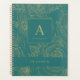 Élégant luxe vert émeraude foncé monogrammed 2026 planner avec faux or tendance motif floral contour personnalisé avec votre nom et texte.