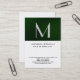 Élégant Monogramme Vert Blanc Simple Carte de visi