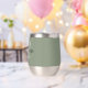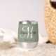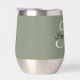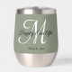 Elégant Sage Vert et Blanc, Black Police Calligraphie Monogramme Heureusement Joyeux Jour Après La Fête Thermal Vin Tumbler
