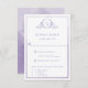 Elégante carte RSVP violet avec un beau monogramme lavande violet, carte avec la possibilité d'ajouter des choix de repas, ou, si vous préférez avoir RSVP sans options de repas, effacez simplement les instructions et les choix des boîtes de texte pour supprimer ou ajouter à sa place un message personnel à vos invités (c'est-à-dire "espère que vous pouvez le faire, ne peut pas attendre de vous y voir!"). Un cadre d'aquarelle mauve fin sur le devant, tandis que le dos avec une délicate aquarelle dans les teintes violettes. Style propre, minimal et élégant avec les initiales de monogramme en calligraphie. Une partie de notre collection "Lavender Watercolor Botanical Monogram" avec une variété de produits de coordination disponibles. Visitez la collection entière avec ce lien : https://www.zazzle.com/collections/lavender_watercolor_botanical_monogram_wedding-119337531503251435