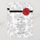 Ce design présente un élégant motif en feuille vintage et une image personnalisée de sceau de cire. L'arrière - plan damassé à motifs de feuilles grises contraste avec le ruban noir et le sceau de cire rouge. Le mélange de gris, de rouge, de noir et de blanc crée un style chic, chic et chic. Conception élégante d'invitation de mariage avec des éléments modernes. La configuration simple de la typographie lui donne un style distinct. Des articles de papeterie mariage correspondants et d'autres formats d'invitation de mariage sont également disponibles.