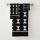 Élégant motif moderne et design blanc géométrique sur le kit de serviettes de bain noir.