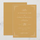This elegant wedding invitation features a warm, muted mustard yellow background with white text and accents, creating a sophisticated contrast. The design showcases Art Deco motifs in the corners, adding a touch of classic elegance with geometric shapes and linear patterns. A mix of script and serif typography enhances the visual hierarchy, guiding the eye through the details while maintaining a modern twist. Perfect for couples seeking a timeless yet contemporary look, this invitation sets the tone for a memorable celebration.