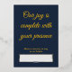 An elegant and minimalist design featuring a deep navy blue background with a luxurious gold foil frame at the bottom. The back of the card includes a dedicated space for guests to leave a personal memory or a heartfelt wish. Perfect for modern weddings and formal events seeking a sophisticated touch.