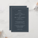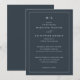This elegant wedding invitation features a sophisticated navy blue background with crisp white text, creating a striking contrast. The layout is centered and symmetrical, utilizing a classic serif font that adds a touch of refinement. Decorative lines subtly enhance the design without overwhelming it, while ample negative space ensures clarity and focus on the message. Perfect for formal celebrations, this invitation exudes tradition and sophistication, making it ideal for couples seeking a timeless aesthetic.