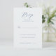 This elegant wedding RSVP card features a minimalist design with a serene light blue background and dark navy text, creating a sophisticated and calming atmosphere. The layout is clean and formal, with ample negative space that emphasizes clarity and readability. It includes customizable placeholders for names and attendance details, making it easy to personalize. The typography combines cursive script for the "RSVP" heading with simple serif fonts for instructions, enhancing its stylish yet functional appeal. Perfect for couples seeking an understated yet refined invitation suite, this card sets the tone for a memorable event.