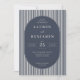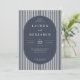 This elegant wedding invitation features a classic design with vertical striped borders in alternating dark and light blue, creating a sophisticated frame around the central oval. The deep navy blue background highlights crisp white serif typography, conveying formality and tradition. Customizable placeholders for names, dates, and locations are seamlessly integrated into the layout, ensuring personalization while maintaining a refined aesthetic. Ideal for formal celebrations, this invitation exudes sophistication and is perfect for setting the tone for a memorable event.
