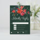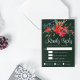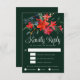 Cette belle carte de vacances RSVP présente une magnifique aquarelle de fleurs de poinsettia rouges et de feuilles de pin pour Noël. Un élégant invitation de mariage d'hiver en vert chasseur foncé. Une célébration festive de l'amour pour les fêtes. Personnalisez le dos de cette carte de réponse florale poinsettia avec les initiales monogrammes du couple.