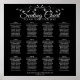 Ce magnifique tableau de 12 sièges mariages de table vous permettra de trouver facilement les sièges qui vous sont assignés à votre réception. Dispose d'un design simple mais élégant avec du texte gris pâle sur un arrière - plan noir et une bordure vintage en fibre florale en faux feuille d'argent.