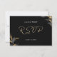 Elégante carte RSVP Black avec mariage or conçue avec un texte blanc sur un arrière - plan noir et surlignée de feuilles noirs et dorés. Le texte comprend : RSVP, les Noms de la mariée et de la mariée et la Date du Mariage. L'envers est conçu avec du texte noir sur un arrière - plan blanc et comprend : votre date de réponse et l'espace pour que vos invités écrivent leur réponse à la main. Pour personnaliser, insérez simplement vos détails dans notre modèle facile, en remplaçant l'exemple de texte. N'oubliez pas de consulter la collection Elegant Black With Gold Mariage pour obtenir le papier à lettres correspondant.