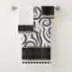 Ce bel ensemble de serviettes est orné de motifs noirs et blancs aux accents dorés. La serviette de bain est blanche avec des tourbillons noirs bordés de motifs noirs et d'accents dorés. La serviette de bain et le linge de toilette sont fournis gratuitement. Idéal pour tout décor de salle de bain.