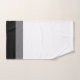 Élégant noir blanc Gris Gris Stripes Script Monogramme Serviette de bain est un design moderne avec des rayures horizontales dans les couleurs noir, blanc et gris sur le devant inférieur et est personnalisée avec le nom de famille dans élégante écriture blanche. L'aménagement est parfait pour un look soigné et rafraîchissant à la décoration de la salle de bain ou simplement si vous voulez un ensemble de serviettes qui s'harmonise avec la plupart des couleurs.