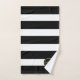 Décorez votre salle de bain en ajoutant une touche de classe avec ce somptueux ensemble de serviettes de bain Monogram Gold Stripes Noir Blanc. Ce design moderne a de larges bandes horizontales noires sur la bordure blanche arrière - plan et noire du centre. Votre initiale est en faux or simple lettrage et personnalisée avec le nom de famille en blanc tendance écriture lettrée à la main. Vous pouvez remplacer le nom de famille par le prénom si vous le souhaitez. Cliquez sur l'option Personnaliser le modèle et suivez les invites.