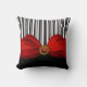 Ajoutez une touche d'élégance à votre chambre, avec ce magnifique coussin rayé noir et blanc, avec des graphismes d'un beau satin rouge comme arc, à l'avant et un bauble rouge et or, au milieu de l'arc. Jolie touche décoratrice, pour toute chambre de la maison ou du bureau.