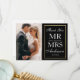 Photo Mariage moderne élégante mais simple Carte de remerciements noir et blanc avec cadre or