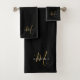 Élégant coffret de bain Monogramme en or noir moderne. Un élégant monogramme en or combiné à une police blanche de san-serif, donne un aspect contemporain.