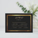 Elégante carte de réponse RSVP Black & Gold Wedding. Options Pour Le Dîner.