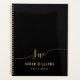 Noir minimaliste Or moderne Monogramme Carnet de planificateur initial. Créez votre propre carnet personnalisé avec des initiales personnalisées dans la typographie de script et le nom personnalisé.