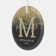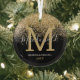 Monographie de famille en verre de noël avec un arrière - plan noir tendance, une élégante parties scintillant d'or design cascade, votre initiale, nom de famille, prénoms, et l'année.