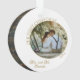 Élégant, festif et rustique Notre premier Noël en tant que Madame. & Mr. Photo Ornament. Ornement de vacances pour les jeunes mariés. Le design a une photo dans le cadre cercle bois foncé, texte dans un script doré moderne Notre premier Noël, Mme. et M. et l'année mariage. Insérez votre photo dans le modèle et personnalisez l'ornement.