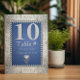Élégant numéro de table bleu royal et argent