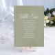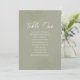 Numéro de table de réception moderne simple modèle et mariage, avec script de calligraphie, un élégant décor de réception, typographie chic, et feuilles botaniques verts, parfait pour une destination mariage tropicale, avec feuilles de palmiers, feuillage verdoyant, un design unique pour les mariages côtiers