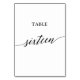 Ce numéro de table seize en calligraphie noire élégante est parfait pour un mariage simple. Le design neutre présente une carte minimaliste décorée d'une typographie romantique et fantaisiste. La carte est imprimée sur l'avant et l'arrière (recto-verso). Les autres numéros de table de la collection sont vendus séparément.