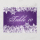 Design élégant "Table Number" de mariage avec romantique Winter Snowflakes Conception violette et texte de numéro de tableau personnalisé. Impressionnez votre famille et vos amis avec ce design élégant et moderne. Entièrement personnalisable ! Facile à utiliser et facile à personnaliser. Commandez aujourd'hui !