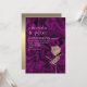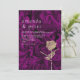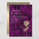 Moderne, élégant, luxueux, chic faire-part de mariage violet avec une fleur rose d'or unique et script de calligraphie simple.