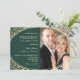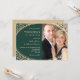 Luxe, moderne, déco, élégante faire-part de mariage vert émeraude avec cadre vintage or et photo de mariée et mariée.
