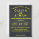 Cette élégante calligraphie noir et or en un seul faire-part de mariage est parfaite pour un mariage moderne. Le design minimaliste romantique présente une belle et élégante typographie noir et or sur un arrière - plan rustique et chic.