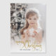 Accueil de vacances simple et élégant avec votre photo avec un filtre blanc opaque, fausse parties scintillant or personnalisé Joyeux script de calligraphie de Noël et champs de texte modifiables.