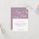 Elégante et romantique Enregistrer la carte Date avec une belle et délicate ligne orchidée blanche dessin en haut, sur un arrière - plan pourpre poussiéreux classe. La partie inférieure est facilement personnalisable en éditant les champs de modèle avec vos noms, date et emplacement dans une police tout-casquette violet moderne et simple sur un arrière - plan blanc simple. Pour plus de personnalisation ou des commandes personnalisées, n'hésitez pas à me contacter à acherryonthecake@hotmail.com (veuillez prévoir 1-2 jours ouvrables). Cette carte Save the Date fait partie de la collection "Delicate Orchids - Dusty Purple mariage suite" avec de nombreux éléments de coordination pour créer une suite de mariage unique.