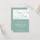 Elégant et romantique Enregistrer la carte Date avec une belle et délicate menthe vert orchidées design en haut, sur un arrière - plan blanc classe. La partie inférieure est facilement personnalisable en éditant les champs de modèle avec vos noms, date et emplacement dans une police tout-casquette blanche moderne et simple sur un arrière - plan vert simple. Pour plus de personnalisation ou des commandes personnalisées, n'hésitez pas à me contacter à acherryonthecake@hotmail.com (veuillez prévoir 1-2 jours ouvrables). Cette carte Save the Date fait partie de la collection "Delicate Orchids - Mint Green mariage suite" avec de nombreux éléments de coordination pour créer une suite mariage unique.