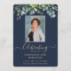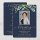 Personnalisez ce programme simple et élégant avec le nom, la photo et le message de l'être cher disparu. Honorer et célébrer la vie de votre être aimé avec ce modèle de verdure fleurie moderne, élégant, eucalyptus avec l'élégant script or sur un arrière - plan bleu classique. Facile à customiser texte et texte. Nos sincères condoléances et nos prières vous accompagnent pendant cette période très difficile.