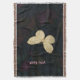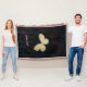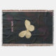 L'image montre une couverture tissée avec un grand papillon doré au centre sur un arrière - plan texturé foncé aux subtiles nuances de violet et de bleu. La couverture a des arêtes frangées et inclut le texte de l'espace réservé personnalisable "vous texte" en rose sur le côté.