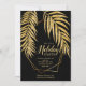 Des frondes de palmier à parties scintillant en faux or glamour sur le noir avec les détails de votre fête de Noël en lettrage chic. MODIFIEZ le libellé, les polices, les couleurs de police, même la couleur arrière - plan. Les dessins sont des illustrations/graphiques à papier plat - PAS VRAIMENT PARTIES SCINTILLANT OR. Sélectionnez Matte pour le papier le plus lourd. Invitations de la partie correspondante, enregistrez les cartes de dates, les sacs de faveur et d'autres articles dans notre magasin —> http://bit.ly/2JQANWZ <—