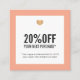 Elégant modèle de carte de réduction personnalisable avec arrière - plan blanc pastel et fausse icône coeur or. Outil marketing parfait pour les professionnels de la beauté, salon de beauté.