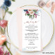 Dégustez vos invités avec cette carte Menu exquise. Conception coordonnant nos invitations "Pastel Floral Quinceañera". Disposez le design avec sur le dessus un agencement floral bleu, rose, baies, bordeaux, bleu pâle et bleu marine unique, des taches d'aquarelle bleu délicat et sur le fond votre nom et votre date. or rose et détails de calligraphie manuscrite moderne à l'avant et à l'arrière. Belle conception sur le dos avec grand bouquet floral avec bande centrale avec détails d'or rose, et nom de quinceañera. Egalement disponible en espagnol. Une partie de notre collection "Pastel Floral".