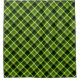 Un rideau de douche avec un beau design en motif plaid en diagonale en vert pois.
