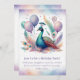 Add a touch of elegance to your celebration with this stunning watercolor peacock birthday invitation! With its vibrant feathers, pastel balloons, and boho-chic accents, this design is perfect for stylish parties, milestone birthdays, or peacock-themed events.