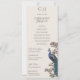 Cet élégant programme d'Ordre du Service mariage unilatéral en ivoire présente des illustrations dessinées à la main d'un oiseau paon bleu et turquoise entouré de verdure de Magnolia, présentant des fleurs de magnolia rose vif et crème vibrante, le tout contre un élégant arrière - plan en ivoire. Le dos est orné d'un élégant motif floral et ornithologique avec des illustrations coordonnées. Customisez avec vos coordonnées de mariage, y compris le monogramme de mariée et mariée, la date, le titre, l'ordre de service et la fête de mariage.