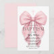 Elegant Pink Bow Baptism Girl Invitation