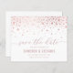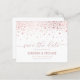 Famille d'Invitations et amis à votre mariage avec cet élégant personnalisable enregistrer la carte à plat date. Il présente des points confettis en feuille d'or rose, un script élégant et une typographie simple. Personnalisez ce moderne enregistrer la carte de date en ajoutant des noms, la date et d'autres détails. Cette feuille fausse rose enregistrer la carte date est parfait pour tout thème ou saison mariage.