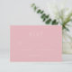 This wedding RSVP card features a minimalist design with a soft pink background, creating an elegant and serene atmosphere. The layout includes clean, sans-serif typography for clarity, complemented by a graceful cursive script as a placeholder for personalization. The card offers options to "Happily Accepts" or "Regretfully Declines," ensuring a straightforward response process. Its modern minimalism, characterized by ample negative space and a limited color palette, exudes sophistication, making it perfect for formal events.