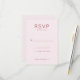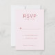 This elegant wedding RSVP card features a minimalist design with a soft pink background and deep maroon text, creating a sophisticated contrast. The layout is clean and spacious, emphasizing clarity and simplicity, with bold serif typography for the "RSVP" heading and customizable fields for personalization. Horizontal lines guide responses, offering options to "accepts with pleasure" or "declines with regret," while space is provided to indicate the number of attendees. The overall style exudes a polished and formal aesthetic, perfect for conveying an invitation with grace and ease.