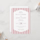 This elegant wedding invitation features a classic design with vertical pink and white stripes framing the central content, creating a sophisticated and timeless look. The off-white background enhances the soft contrast, while the mix of serif fonts adds a formal touch, making it perfect for a traditional celebration. Customizable elements allow you to personalize the details, ensuring your special day is reflected in every aspect. The overall mood is warm and inviting, ideal for announcing your wedding ceremony and reception.